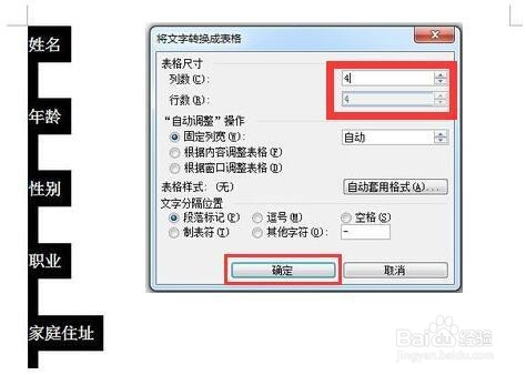 列数输入4,选择段落标识表记标帜,确定。