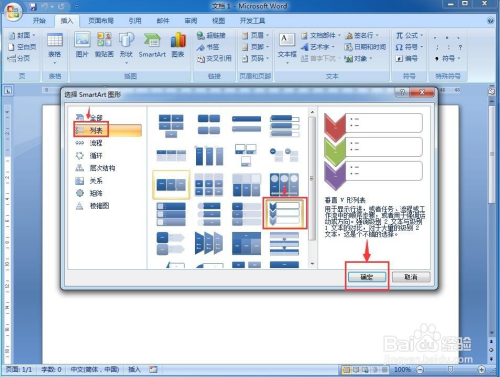 在列表类找到并选中垂直V形列表,然后按确定;