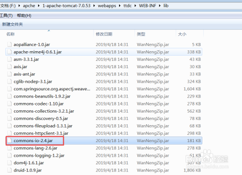 这个利用加倍简单,可是需要添加tomcat的架包依靠commons-io.jar。