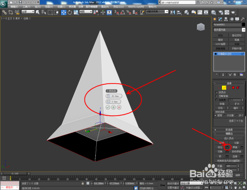 打开3Dmax2012软件,点击【建立】-【几何体】-【四棱锥】,在作图区域绘制一个四棱锥模子并设置好模子的各个参数;