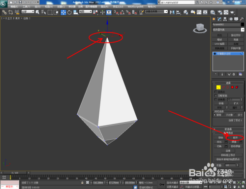 点击右边工作区中的【极点】图标,选中模子极点后,点击【断开】。完当作断开后生当作四个极点,将四个极点别离往四个偏向拉动。同样步调完当作图示模子中间点的断开操作(如图所示);