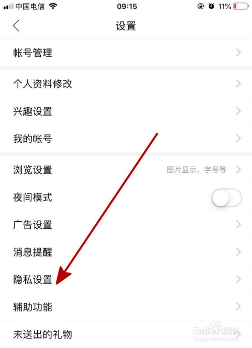 在打开的“设置”页面中,点击“隐私设置”,如下图