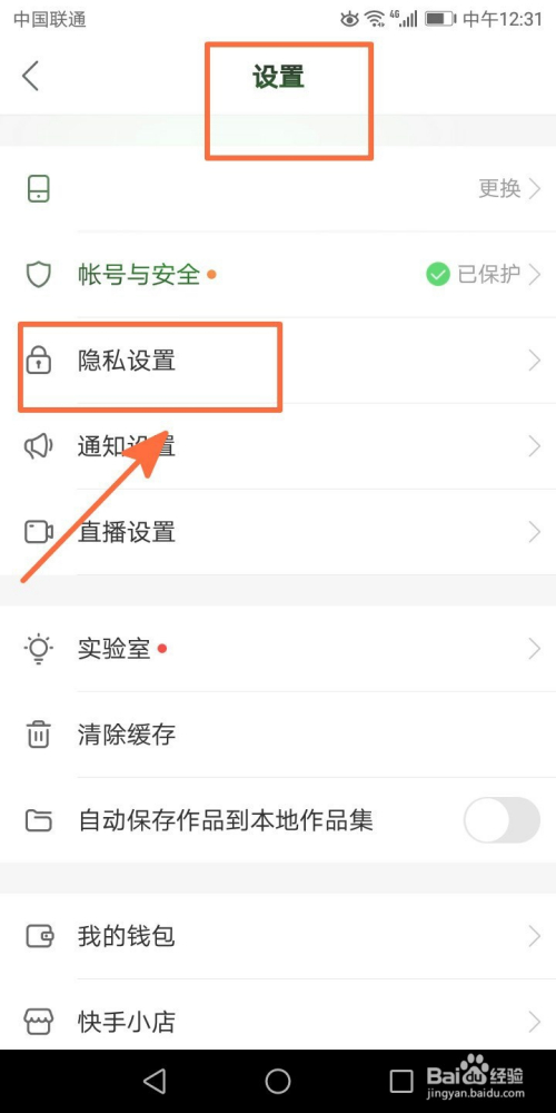 我们找到隐私设置选项并点击选择;