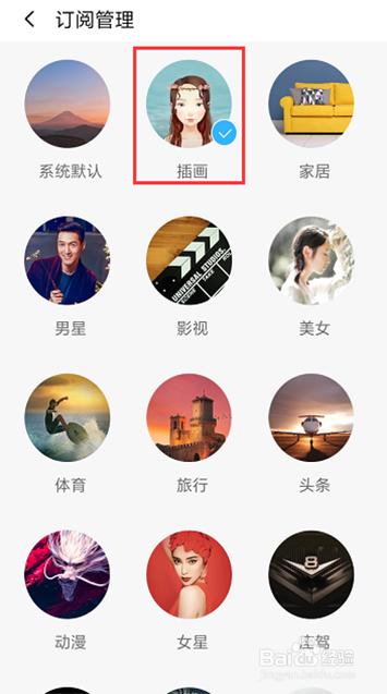 进入更多订阅页面,选摘要订阅的锁屏壁纸,好比:插画。