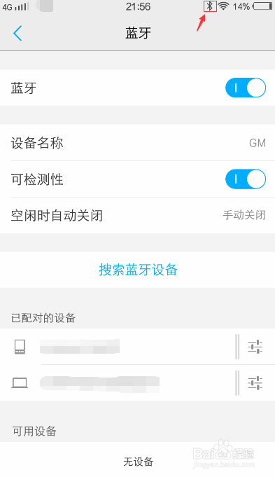 注重:对方要打开蓝牙,同时要许可可以被搜刮查抄,才能搜刮到对方的设备。