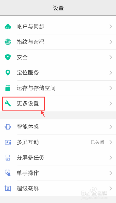 进入设置页面,往下滑动页面,找到【更多设置】点击它。