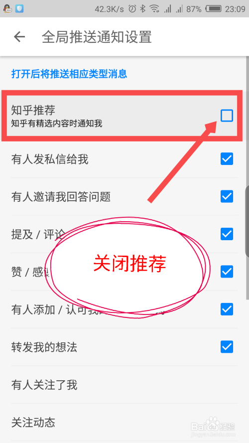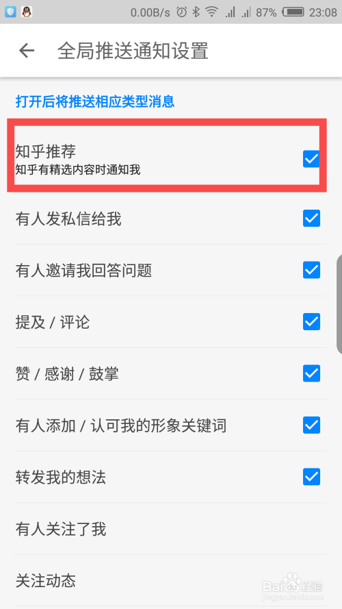 上面第一个选项,就是精选内容保举通知设置,默认是接收保举通知的。