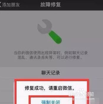 当我们点击之后,我们的手机遇跳转到下一界面,然后我们点击此界面右上方近似东西的选项,然后,我们点击“修复聊天记实”便可以找回按照它的提醒去恢复我们的微信记实了