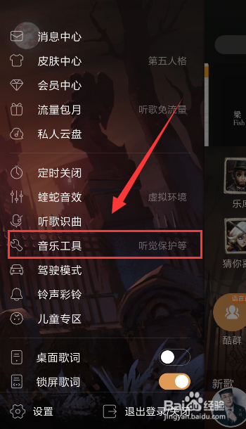 进入酷狗音乐界面,点击左上角的三的图标,如图所示