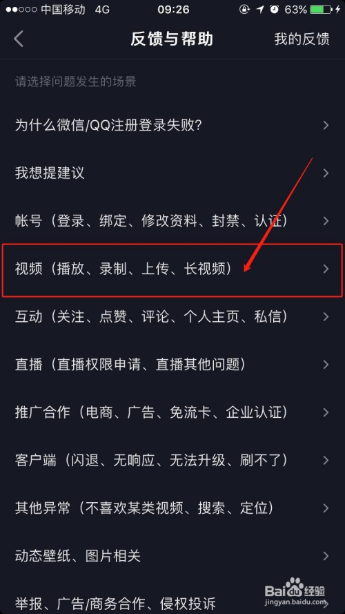 在【设置】菜单栏中,我们找到并点击【反馈与帮忙】选项,随后选择【视频(播放、录制、上传、长视频)】选项