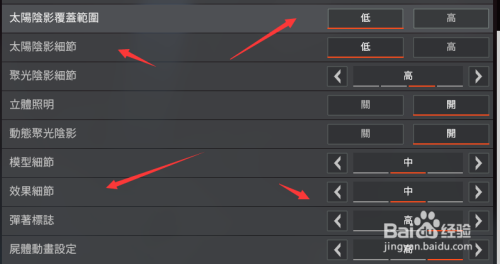 将“太阳暗影”、“聚光结果”、“模子细节”等非必需选项都调至最低。