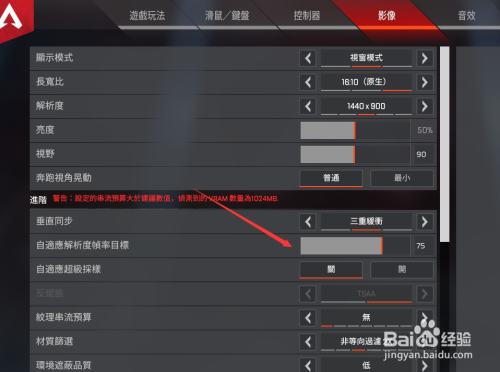 可以将自顺应帧数调整到“50-60”之间以知足游戏的根基需求即可。