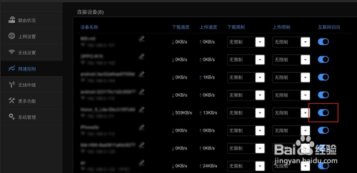 禁止设备下面有这个电脑,那么即可禁止它上网,要恢复,点击移除。