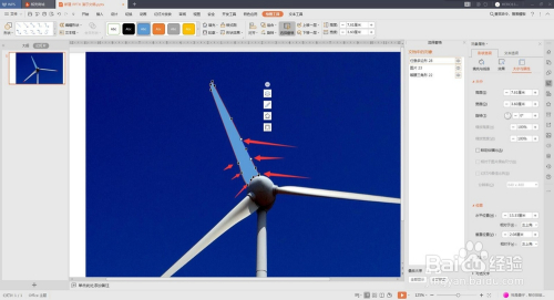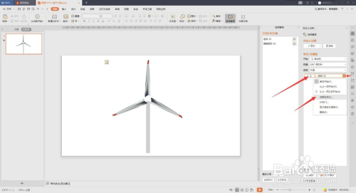 PPT功能很是壮大,我们可以用它做各类动画,同样还可以做简单抠图,这里我们示例做一个风力发电机扇叶扭转的动画。