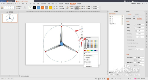 画好曲线后,按着Ctrl依次点击图片和曲线外形,然后选择归并外形,订交,此时抠出了一个扇叶