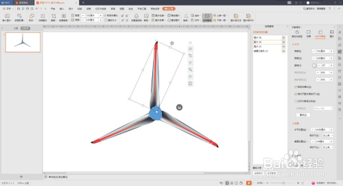 将此扇叶复制当作三份,然后按照预制的正三角形,摆列位置和角度,如图