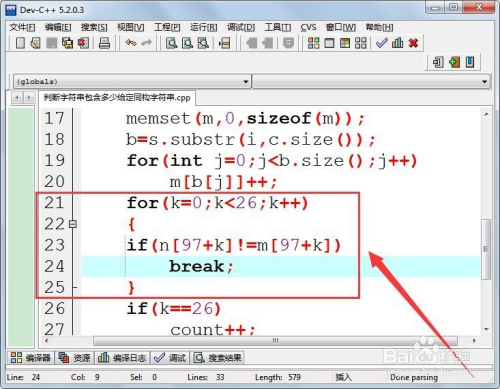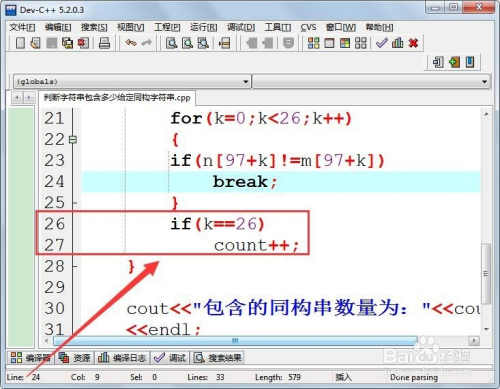 用for轮回实现字符串b中所有字母数目的统计,保留在数组m中。