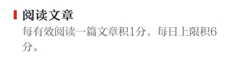 阅读文章,该项分为两部门,别离为阅读数目和阅读时长,阅读6篇文章总计12分钟,即可以别离获得6分,共12分。