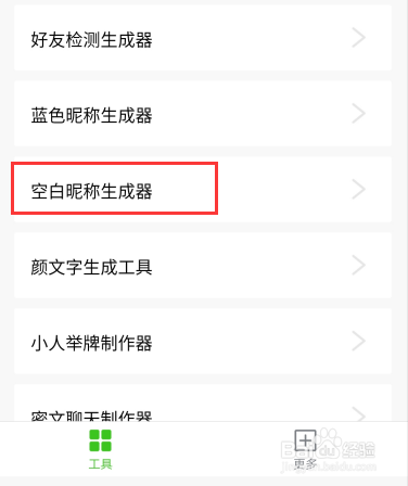 进入玩机东西界面,下拉菜单找到并点击“空白昵称生当作器”。