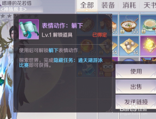 打开背包,选择脸色动作“躺下”解锁道具,利用后就可以激活“躺下”了。