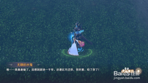 与之对话,它会要求与你进行泅水角逐。泅水角逐很简单,根基上能赢,因为它其实游得很慢,若是你怕掉败,可以利用技术“缩地术”。