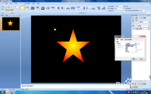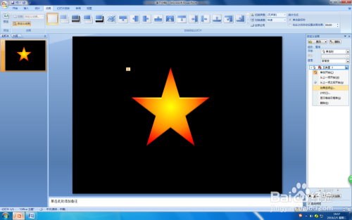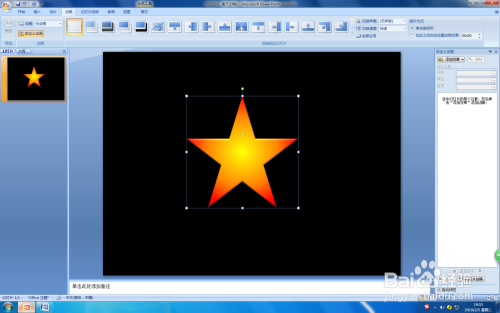 第一步:打开PPT2007,选中要设置退出—滑翔动画的对象。这里选中的是插入的五角星外形。