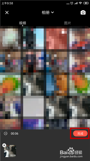 然后选择手机中需要加快播放的视频并选择,点击【完当作】。