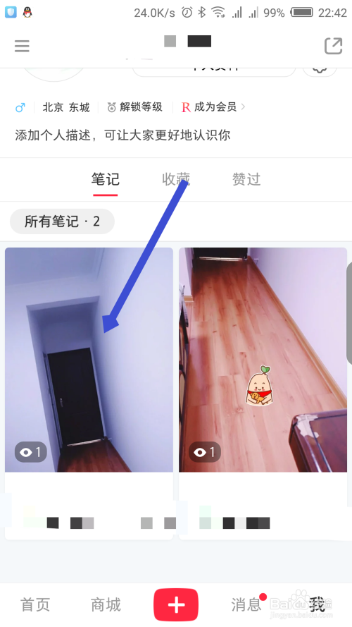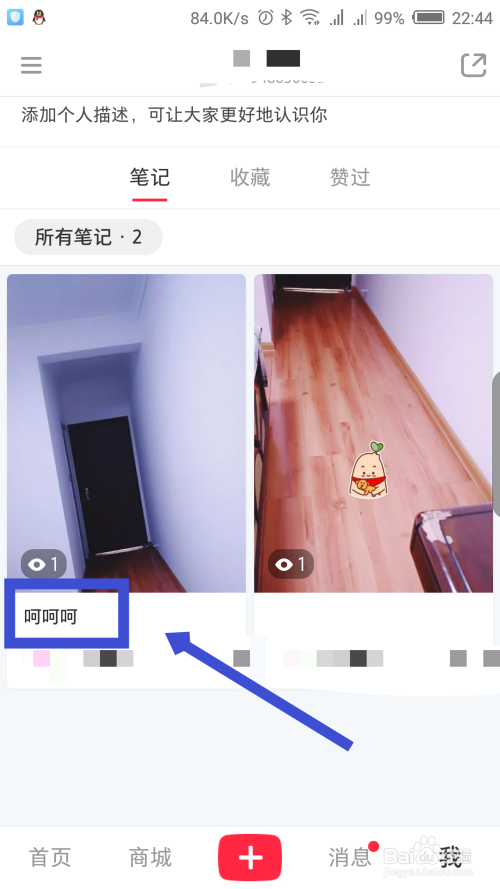 发布当作功后,在返回到我的界面,能看到适才发布的笔记已经点窜了。
