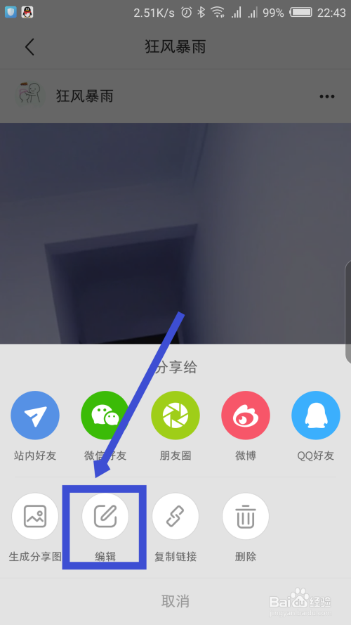 底部会往上弹出一个选项窗口,点击编纂选项。