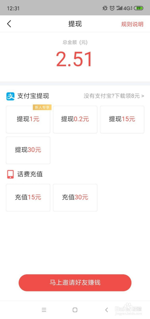 获得的金币会在第二天酿成现金,获得的现金可以提现到支付宝,或者直接进行手机话费充值。