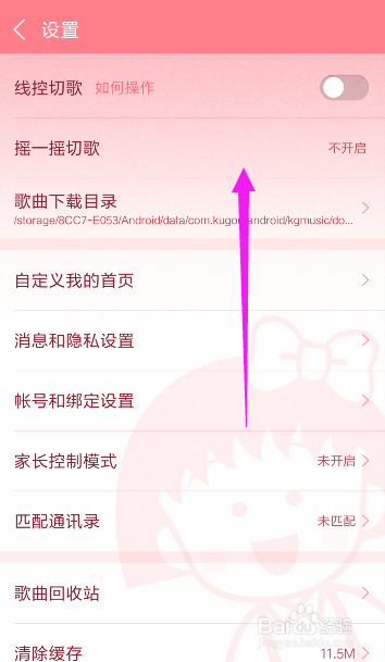 进入设置页面,标的目的上滑动屏幕,如图所示