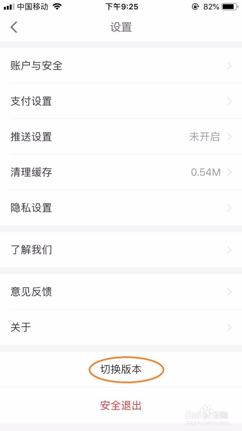 在设置选项中选择”切换版本“选项。