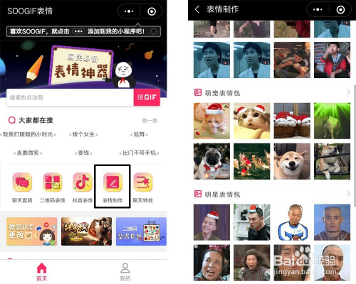 打开微信下拉小程序界面,在搜索框中搜刮“SOOGIF脸色.”