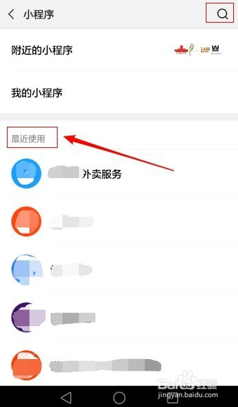 进入小程序页面后, 若是我们确定想添加某个小程序,可以点击页面右上方的搜刮图标。可是微信会鄙人方提醒你比来利用的小程序,一般环境下这些也是你日常利用比力多的,所以我们从比来利用上直接添加小程序。