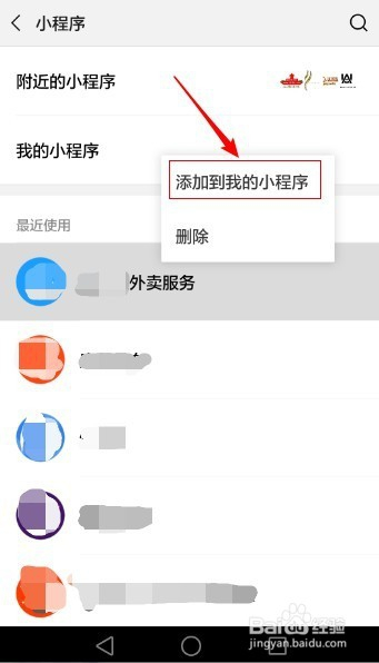 在比来利用的小程序中,选中本身想要添加的并长按。然后呈现两个选项,“添加到我的小程序”和“删除”,点击“添加到我的小程序”。