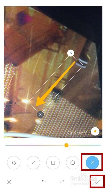 在涂鸦里就能看见【箭头】,点击可利用,上方能选择箭头的颜色,按住拖动即可呈现箭头,调整好箭头的大小、偏向后即可点击右下角的【√】完当作箭头的添加。