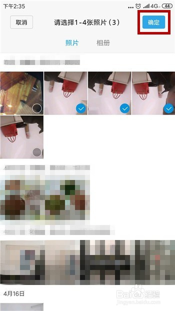 我们需要在手机中选摘要拼接的视频,选择好后点击右上角的【确定】。
