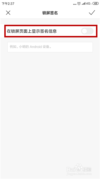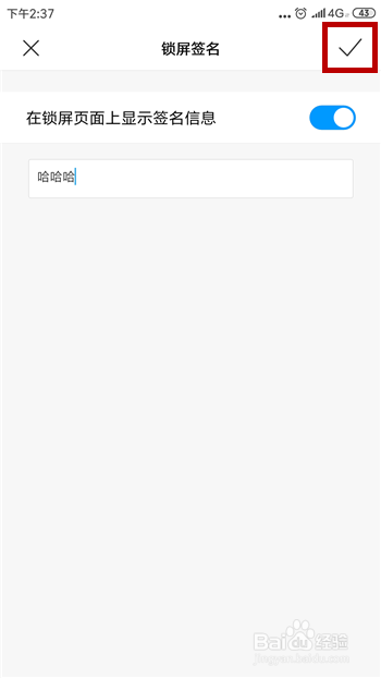 打开后可鄙人方输入锁屏签名,然后点击右上角的【√】保留。