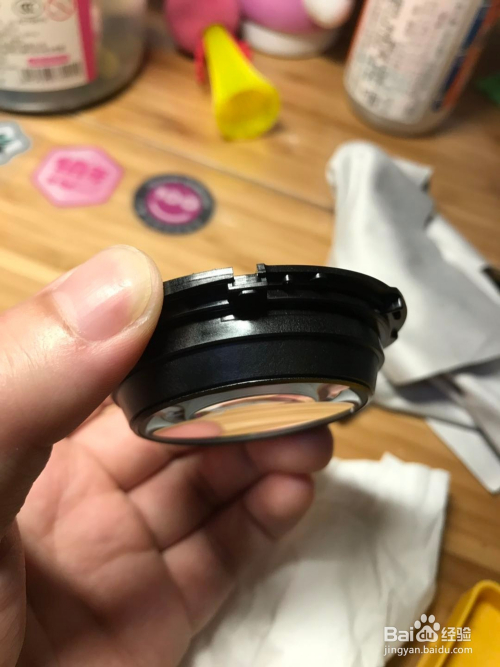接下来按原样装归去,装的时辰注重镜片的装螺丝的处所,有个卡扣一样的工具,有三个,对准镜头里的三个螺纹的处所,按顺时针扭转归去,直接转不动,把螺丝垫片放回,拧好螺丝,把塑料片帖归去,大功乐成。