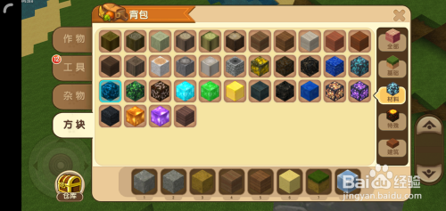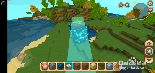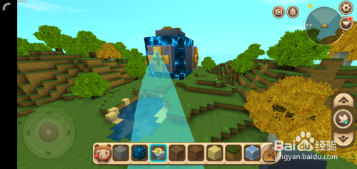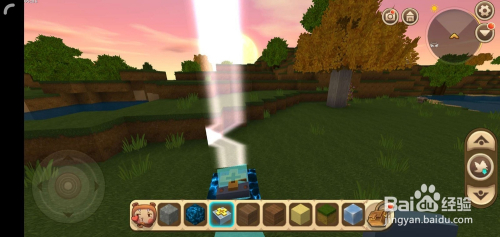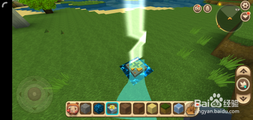 接着打开背包找到轨道节点,在悬浮的电石块5个面(底下那个面不需要)铺上轨道节点;