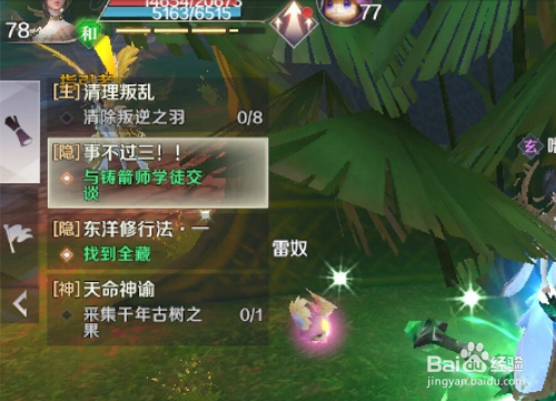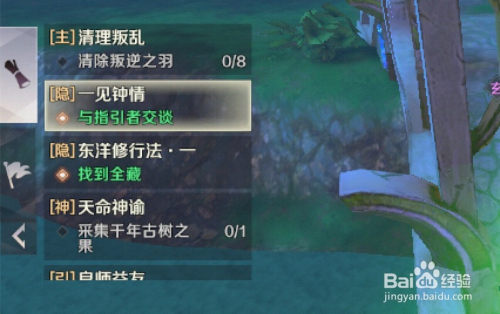 然后,如下图标识所示,在坐标(X285,Y299,Z108)四周,找到羽灵指引者与之对话,触发“一见钟情”使命。