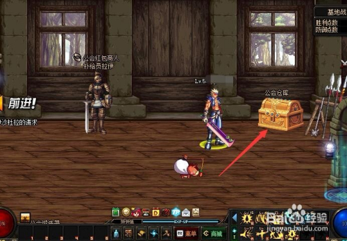 公会仓库位于大厅里面最右侧。