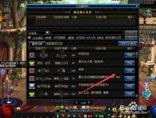 这里会有可供插手的公会名称,或者点击搜刮进入指定的公会,点击申请插手。