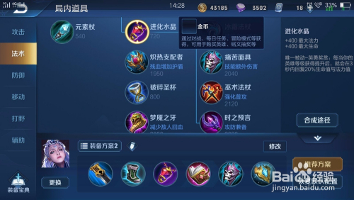 接下来就是出装啦,露娜这个英雄完全依靠技术打出危险。为了填补蓝量的不足,并包管续航能力。出门小打野刀,然后就是净化水晶了,鞋子,二级野刀,吸血书,疾苦面具。后面的装备按照本身的实力和敌方声势,可以选择极北风暴、不祥征兆或者魔女大氅。