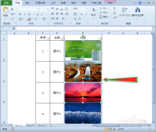 返回到excel表格中后,我们再利用筛选功能筛选出“图片1”和“图片3”,会发现表格中的图片没有错乱,并且图片与内容是精确对应的。如图所示: