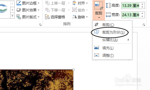 接着我们点击这种图片,然后在“格局”菜单的右侧就会看到一项“裁剪”,如下图所示...