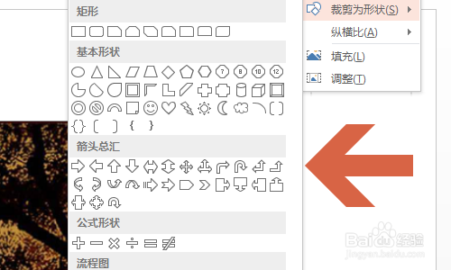 我们需要勾选裁剪下方的“裁剪为外形”,而且在左侧的所有外形列表中选择本身喜好的一种;