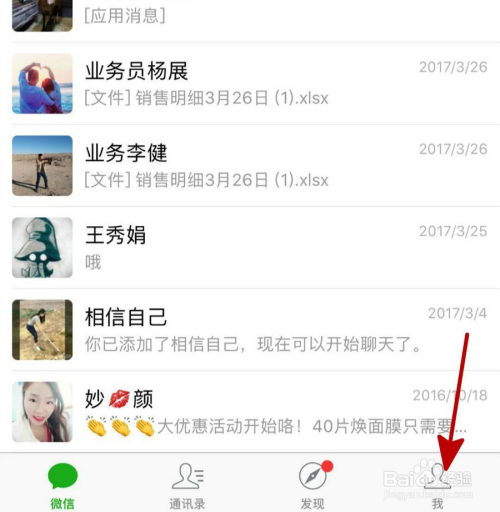 在打开的微信本家儿界面中点击下方东西栏里的“我”,如下图