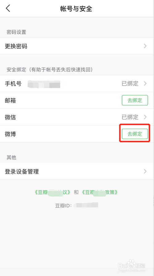 点进去后,在账号与平安本家儿页下找到【微博】一栏,点击此栏右侧的【去绑定】按钮进去绑定!