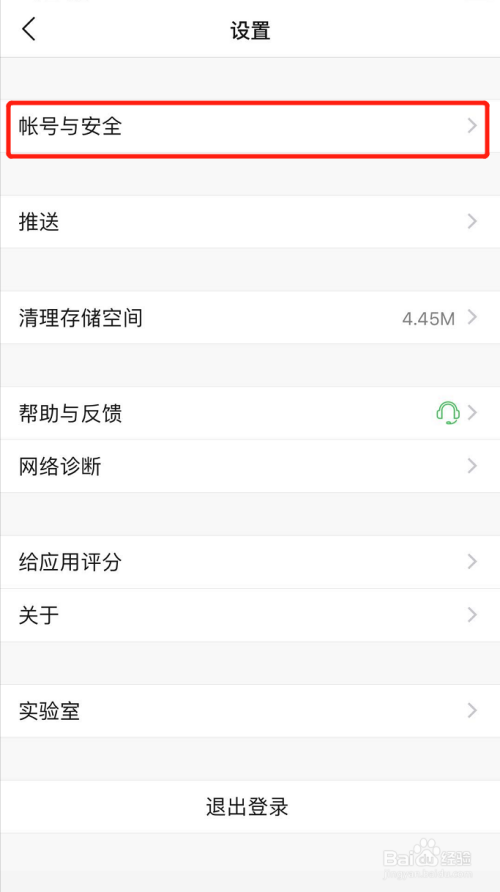 在设置本家儿页下找到【账号与平安】一栏,如图所示,点进此栏!